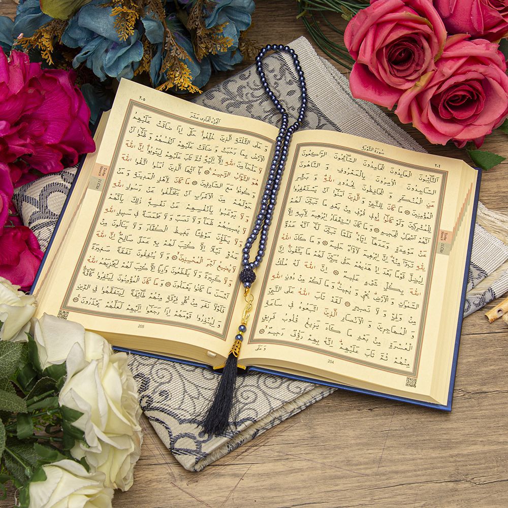 This Purple Quran and Prayer Mat Gift Set is a beautifully curated package designed for prayer, devotion, and reflection. Whether for personal use or as a thoughtful gift, this set adds spiritual significance and elegance to every prayer. It includes a medium-sized Holy Quran, a 99-bead pearl Tasbeeh, a soft taffeta prayer rug, and a ribbon-decorated acetate box, making it ideal for special occasions.